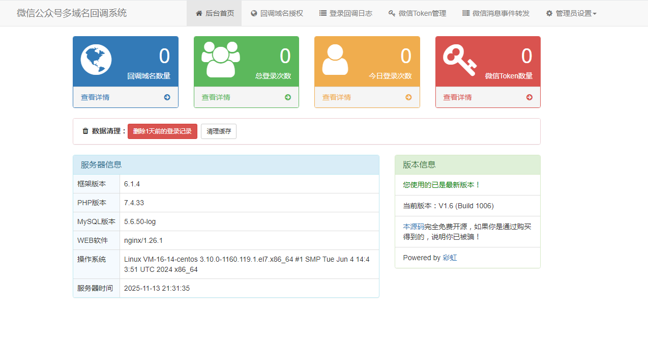 嘎嘎亲测–微信公众号多域名回调系统源码 最新V1.6版本
