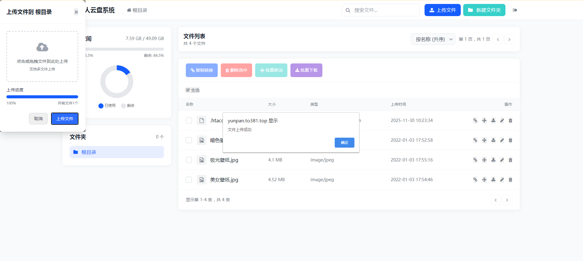 嘎嘎亲测–H5/pc自适应个人专属网盘php程序云盘系统源码云盘存储系统源码
